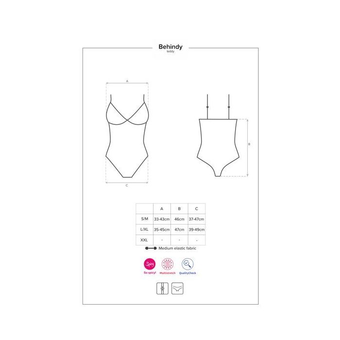 Wil jij jouw partner eens flink verrassen? Dat lukt zeker met de Behindy Body uit de Behindy collectie van Obsessive. Deze strakke body is gemaakt van romantisch bloemen kant. Het doorzichtige kant laat niets voor jouw partner verborgen. De zachte stof streelt jullie lichamen. De body hoeft door het open kruis namelijk niet uit in het heetst van de strijd.
