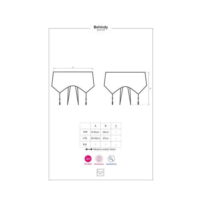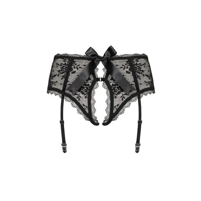 De Behindy Jarretel Slip is een sensuele slip uit de Behindy serie van Obsessive. De slip is gemaakt van luxe bloemen kant van zachte stretch kwaliteit. De slip heeft een open kruis die helemaal doorloopt in het achterpand van de slip. Bovenaan de achterkant is de slip versierd met een satijnen strik en sieraad. Met de 4 jarretelbandjes kun je kousen toevoegen voor een super sexy look!