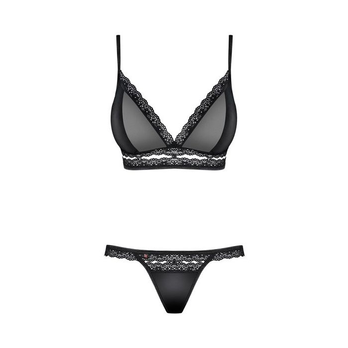 De BH Set 868 - Zwart van Obsessive is een super sexy en charmante set. De set bestaat uit een spannende bralette bh met semi transparante cups en een bijpassende string. De cups zijn de bh zijn niet gevoerd en beugel vrij voor natuurlijk gevormde borsten.