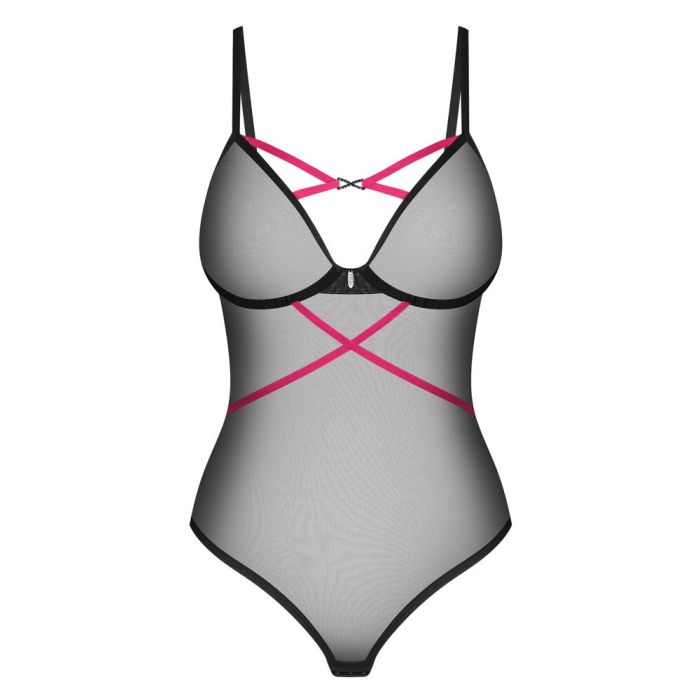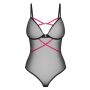 De Stringbody Novenes van Obsessive is een elegante en verfijnde lingerieoptie gemaakt van fijn zwart powernet met roze bandaccenten die zorgen voor een speels contrast. Het ontwerp is zacht en elastisch, waardoor het comfortabel is om te dragen gedurende de hele dag of avond. De zachte cups zijn voorzien van decolletébandjes en prachtige strass-elementen, waardoor deze Stringbody een luxe uitstraling heeft. Daarnaast zijn de bandjes en de haaksluiting in de vrije rug naar wens verstelbaar, zodat je de pasvorm kunt aanpassen aan jouw voorkeur. Gemaakt van 94% polyamide en 6% elastaan, biedt deze Stringbody Novenes van Obsessive niet alleen een verleidelijke uitstraling, maar ook een goede pasvorm en duurzaamheid. Let op dat Obsessive een aparte maattabel hanteert, dus zorg ervoor dat je de juiste maat kiest voor een perfecte pasvorm.