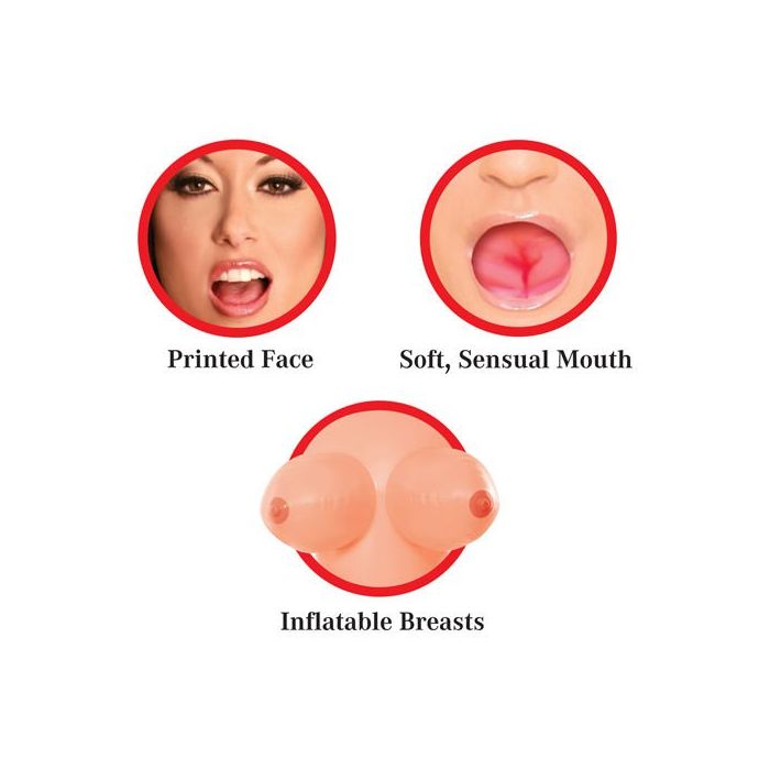 Opblaaspop van goede kwaliteit en met een heerlijke pijpmond van Pipedream. Brooke heeft altijd zin! Of je nu van je werk komt of uit de sportschool... Brooke staat altijd voor je klaar. Ze heeft meerdere openingen; een poesje, een kontje en een mondje. De opblaaspop ziet er realistisch uit en heeft mooie details in het gezicht.
