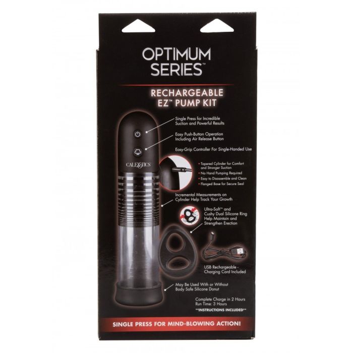 Vergroot je stamina met deze unieke Oplaadbare Ez Penispomp Kit - Calexotics. Dit is een slanke automatische pomp met een ultra zachte donut voor comfortabel gebruik. Met 1 druk op de knop wordt jouw penis naar maximale lengtes gezogen. De penispomp heeft een eenvoudig bedieningssysteem. Een aan / uit knopje en een knopje om de zuigkracht mee te regelen. Eenvoudiger kan haast niet. Het zuigkracht knopje dien jij langer in te drukken om het ontluchtingssysteem te gebruiken. De pomp is op te laden in 2 uur waarna jij 3 uur gebruik kan maken van deze pomp. Op het cilinder staan meet markeringen zodat jij de voortgang kan volgen. Ga elke dag voor een centimeter groter! Na het pompen kan jij de meegeleverde zachte siliconen cockring gebruiken om je erectie omhoog te houden. Maak de Oplaadbare Ez Penispomp Kit eenvoudig schoon door het te wassen met water en een milde zeep.