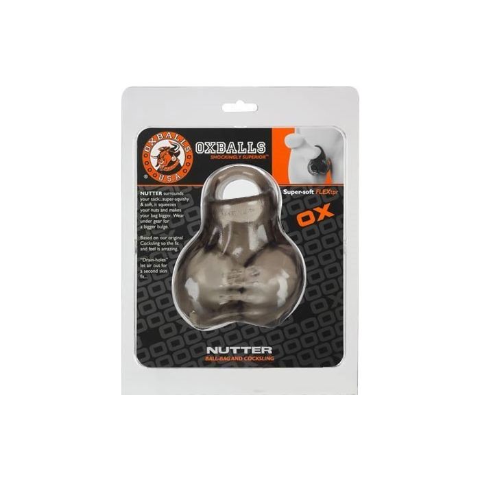 Geniet van een lekker strak gevoel rondom je ballen en groter ogend zaakje met de Oxballs Nutter Ball Sling Smoke. De Nutter Ball Sling Smoke is gemaakt van zacht TPR materiaal dat zeer prettig aanvoelt op de huid. Het materiaal is ook heel flexibel waardoor je het gemakkelijk over je balzak heen trekt. De ring aan de voorkant is bedoelt voor je penis, waardoor deze Ball Sling te allen tijden goed blijft zitten, zelfs wanneer het er ruig aan toe gaat. Aan de onderkant van elke bal zit een kleine opening, zodat het ademt, maar deze opening kan ook gebruikt worden voor bijvoorbeeld elektroden. De Oxballs Nutter Ball Sling Smoke is ook een geweldige opvulling voor je boxer of jockstrap.