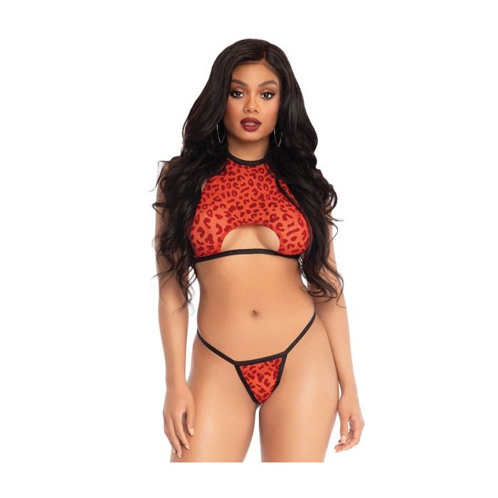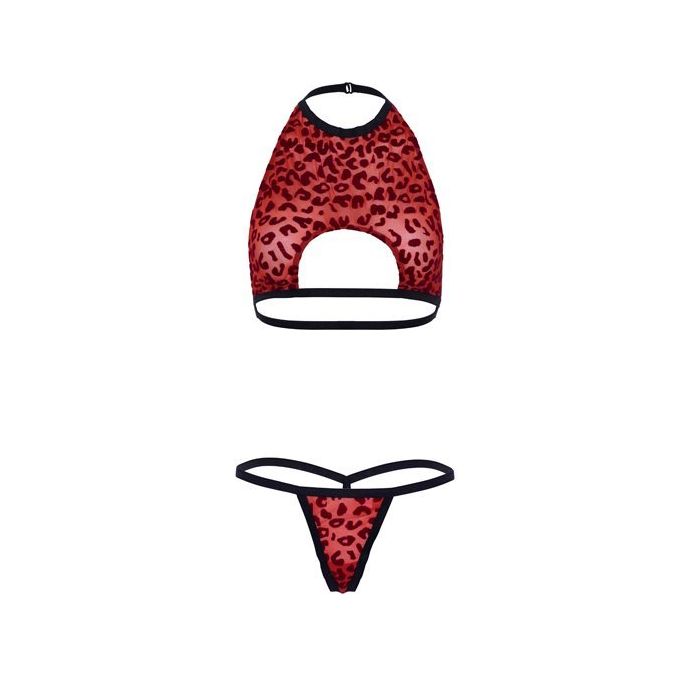 Ben jij op zoek naar iets unieks? Dan is de Panter Crop Top Set - Rood van Leg Avenue een aanrader! Deze sexy set bestaat uit een top en een bijpassende G-string. De korte halter top en de string zijn gemaakt van doorzichtig rood tule. Op het tule is een donkerrode panter flock print aangebracht. De underboob uitsparing maakt deze set extra bijzonder!