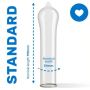 Deze standaard anatomisch gevormde condooms beschikken over een nominale breedte van 54 mm en zijn voorzien van een ruimere top. Hierdoor biedt het meer ruimte voor de eikel en zorgt voor een beter draagcomfort. De condooms zijn voorzien van glijmiddel en een reservoir.