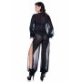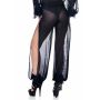 Deze elegante broek is gemaakt van semi-transparant materiaal van zachte kwaliteit. De zijkanten van de lange broekspijpen zijn open met onderaan een nauwsluitende lak boord. Hierdoor hebben de broekspijpen een pof-model. Het spannende lak komt terug op de elastische tailleband. Onderaan de broekspijpen zijn kanten striklinten aangebracht als romantisch detail.