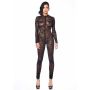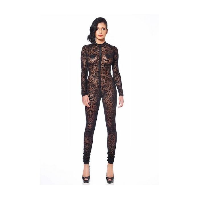 De Patrice Catanzaro Sweety Combi Maori Bodystocking is een chique catsuit met een luxe look. De bodystocking heeft een strakke pasvorm en is gemaakt van heerlijk zachte stretch stof. De stretch stof is van hoge kwaliteit voor een catsuit die lang mee gaat en een perfecte pasvorm heeft. Het opstaande kraagje en het lange model geven een stijlvol en elegant uiterlijk. Door het sierlijke blad- en bloem patroon lijkt het of jouw lichaam met Maori tatoeages is versierd.