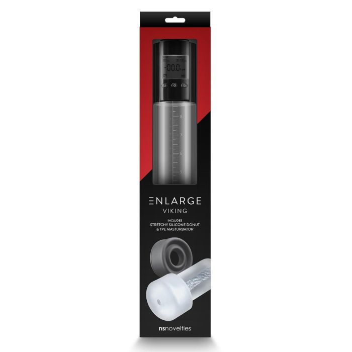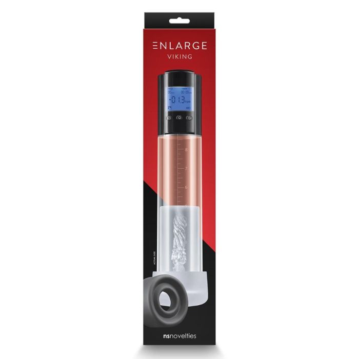 De The Smart Viking pomp komt uit de Enlarge lijn van het merk NS Novelties. Deze slimme penispomp is programmeerbaar, oplaadbaar en heeft een LCD-scherm voor voortdurende stimulatie. Wordt geleverd met een soepele TPE-masturbator en een elastische siliconen donut.