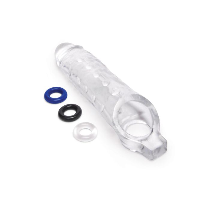 Om je uithoudingsvermogen te vergroten en je plezier te verhogen, worden er drie ringen meegeleverd. Deze ringen kunnen worden gebruikt om de sleeve op zijn plaats te houden en tegelijkertijd de bloedstroom te beperken, wat kan leiden tot een langere en intensere ervaring.
