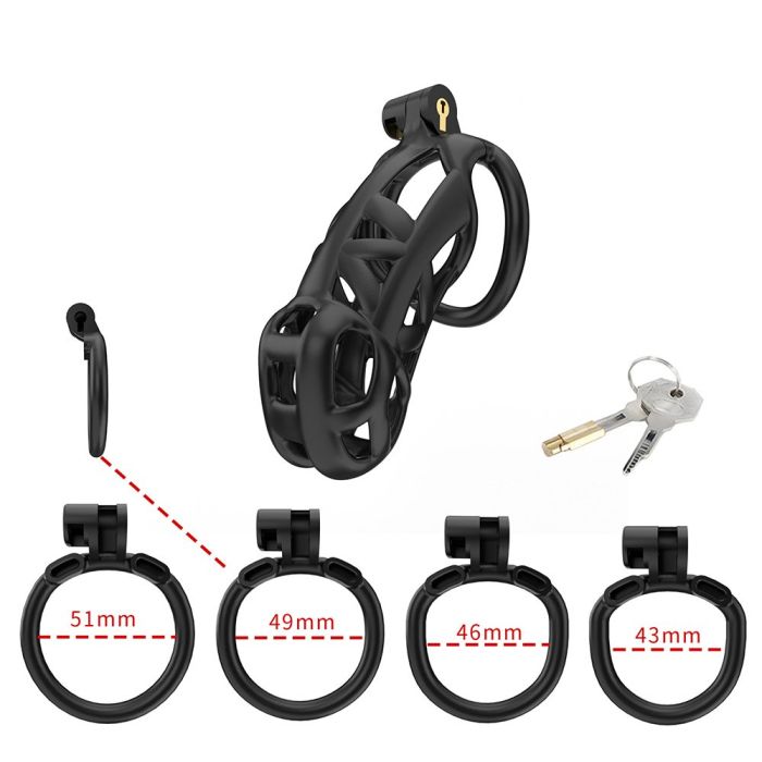 Je kunt kiezen tussen verschillende diameters, namelijk 43 mm, 46 mm, 49 mm en 55 mm, om zo de beste pasvorm te vinden die bij jou past. De CELLMATE Guardian Chastity Cage wordt geleverd met zowel een traditioneel metalen slotje met 2 sleutels, als met een speciale ABS-kunststof adapterpin, waarmee je de kooi in Stealth-modus kunt sluiten met een van de vijf plastic sloten, elk voorzien van een unieke fraudebestendige identificatiecode.