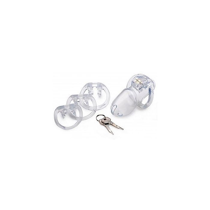Sluit je sub op in deze Peniskooi Clear Captor - Small van Master Series. De peniskooi is gemaakt van vergevingsgezinde materialen voor langdurig comfort, evenals een royale hoeveelheid ventilatiegaten en een plasopening. De Clear Captor bevat 4 balringen van aflopende grootte voor alle soorten balzakken. Het ABS materiaal blijft stijf en stevig voor een gevoel van veiligheid en vertrouwen voor de drager. Het veilige vergrendelingsmechanisme beveiligt deze kooi zonder vervelende sloten die in de weg zitten! De Clear Captor bevat twee sleutels, een voor jou en een voor je sub in geval van nood.