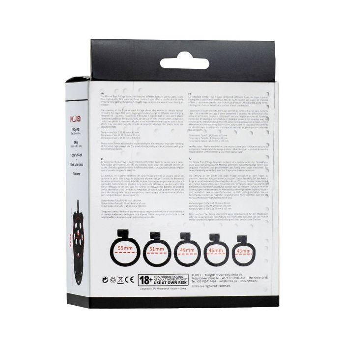 De Rimba P-Cage collectie is een verzameling van verschillende soorten peniskooien. Deze kuisheidskooien zijn vervaardigd van hoogwaardig ABS materiaal en bieden een comfortabele pasvorm met een lange levensduur. Ze zijn ontworpen om de drager te beperken in het krijgen van een erectie.