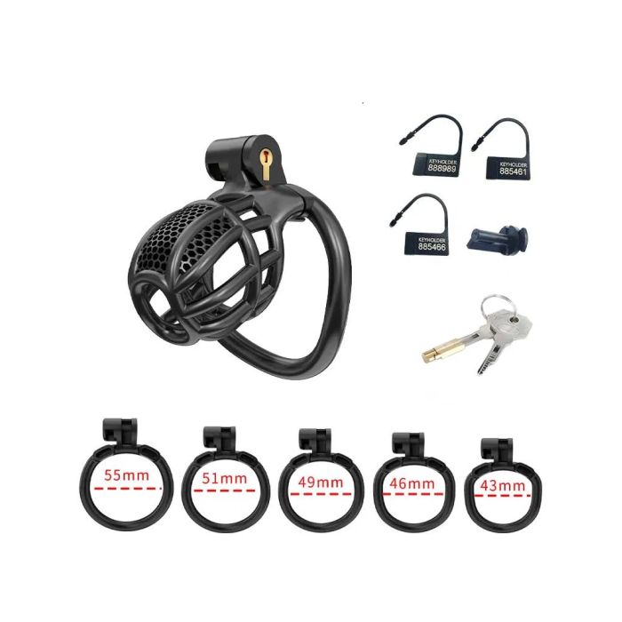 De Rimba P-Cage collectie biedt een innovatieve en veelzijdige oplossing voor degenen die geïnteresseerd zijn in kuisheid en controle. Deze peniskooien zijn vervaardigd uit hoogwaardig ABS-materiaal, wat niet alleen zorgt voor een comfortabele pasvorm, maar ook voor een lange levensduur, waardoor ze ideaal zijn voor langdurig gebruik. Elke kooi is ontworpen om de drager te weerhouden van een erectie, terwijl de slimme opening aan de voorkant het mogelijk maakt om te urineren zonder de kooi te hoeven verwijderen, wat het gebruiksgemak aanzienlijk vergroot. De set bevat vijf ringen in verschillende maten, variërend van 43 tot 55 mm, zodat gebruikers de perfecte pasvorm kunnen vinden. Bovendien wordt de set geleverd met een koperen inbouwslot en drie genummerde plastic hangsloten, die na gebruik eenvoudig kunnen worden afgeknipt met een schaar. Voor extra flexibiliteit zijn er ook twee plastic schroeven inbegrepen, die een alternatief bieden voor de koperen sloten, vooral handig voor reizigers die zich zorgen maken over veiligheidscontroles op luchthavens, aangezien de plastic sloten luchthavenvriendelijk zijn.