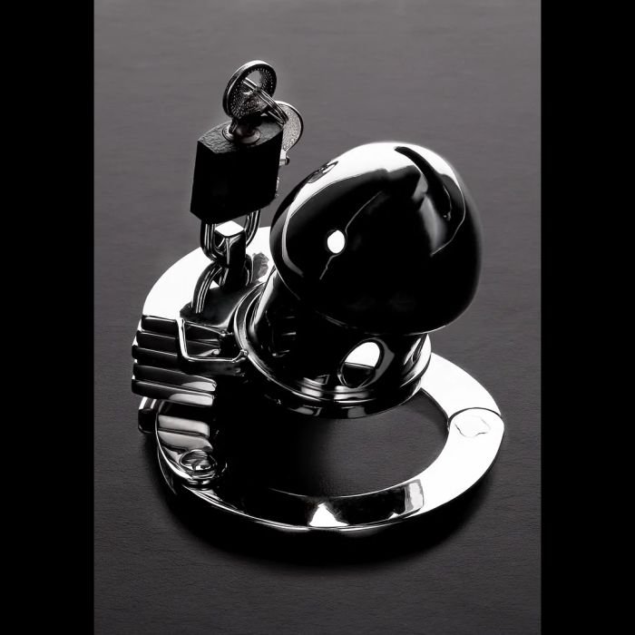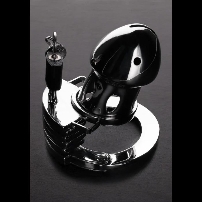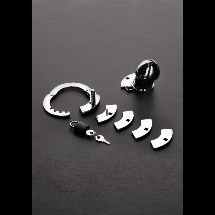 De Peniskooi The Prison Bird is ontworpen voor de avontuurlijke man die zijn grenzen wil verkennen. Met een innovatief manchetachtig ontwerp biedt de basisring plaats aan vier verschillende maten, zodat je de perfecte pasvorm kunt vinden. Het pin-in-gatplaatsysteem houdt zijn ballen veilig binnen de stevige roestvrijstalen ring, terwijl zijn slappe schacht gevangen blijft in de compacte metalen kooi. Dankzij de drie afstandhouders kun je de lengte van de kooi eenvoudig aanpassen, waardoor je de intensiteit van zijn ervaring kunt verhogen. De ademende constructie en het handige urineringsgat maken langdurig gebruik comfortabel en praktisch. Met een kooilengte van 7 cm en een aanpasbare cockring grootte van 4 cm tot 5.5 cm, biedt deze kuisheidskooi de perfecte mix van veiligheid en plezier. Sluit hem op en laat hem genieten van de spanning van het wachten!