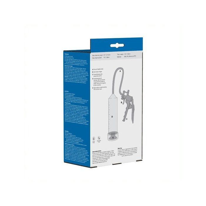 De Me You Us Trigger penispomp is ontworpen voor gebruiksgemak, met een slimme pneumatische pomp en een krachtige grip die je volledige controle geeft. De transparante cilinder laat je precies zien wat er gebeurt, terwijl de soepele, flexibele slang en luchttrekker zorgen voor een moeiteloze werking. Geniet van de comfortabele en rekbare TPE-afdichting die eenvoudig te verwijderen is voor een snelle en hygiënische schoonmaakbeurt. Bovendien is deze pomp latex- en ftalaatvrij, wat zorgt voor een veilige en plezierige ervaring. Verhoog de bloedtoevoer naar je penis, versterk je orgasmes en ervaar een ongekend genot dat je zelfvertrouwen een flinke boost geeft. Perfect voor die momenten waarop je net dat beetje extra nodig hebt!