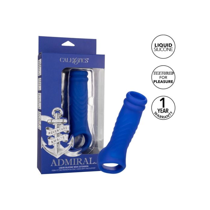 Deze Penissleeve Admiral Wave Extension van CalExotics is gemaakt van ultra elastisch materiaal en zo gemaakt van het elke man past. De getextureerde sleeve en ingebouwde scrotumband zorgen voor meer stimulatie en krachtige ondersteuning. Het siliconen voelt lekker zacht, comfortabel en geeft een lekker strak gevoel. Dit lichaamsveilige materiaal is ongeparfumeerd en ftalaatvrij om je meest gevoelige plekjes blij en gezond te houden.