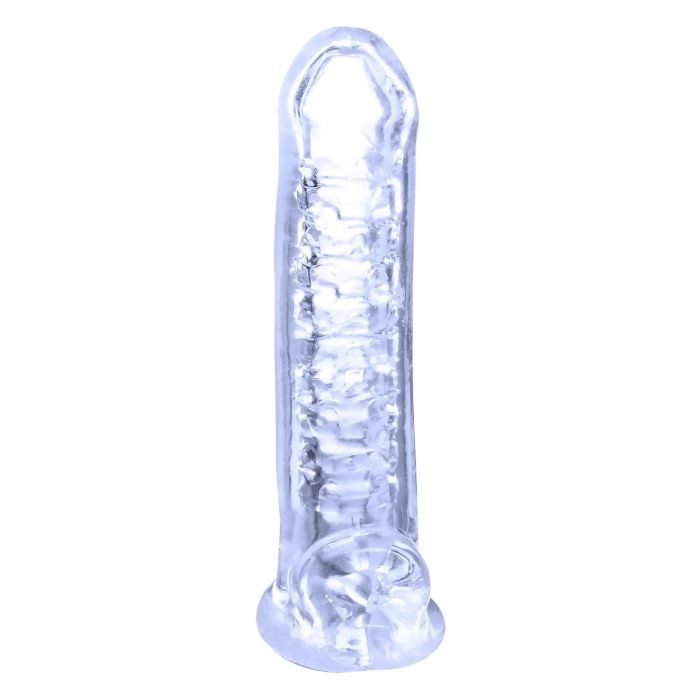 Ontdek de Penissleeve Ice Crystals van NMC, een spannende toevoeging aan je intieme momenten! Met een lengte van 18 cm en een inbrengbare lengte van 13,9 cm, biedt deze sleeve een perfecte pasvorm voor een extra stimulatie. Het verlengstuk van 8,9 cm zorgt voor een indrukwekkende penisverlenging, terwijl de flexibele structuur zich aanpast aan jouw lichaam voor optimaal comfort.