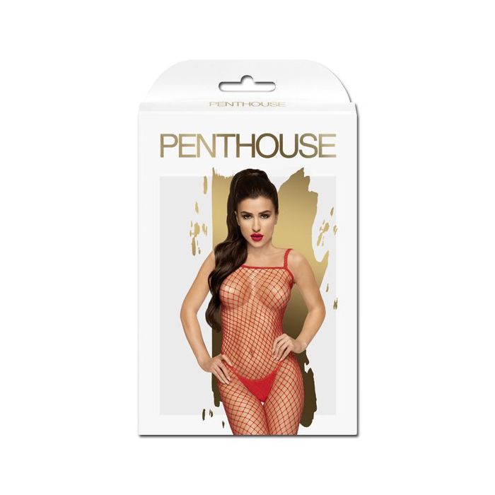 Dress to impress in de Penthouse Body Search Bodystocking - Rood! Deze netstof catsuit heeft een structuur van grove mazen, zodat er niets aan de verbeelding over gelaten hoeft te worden. Deze bodystocking heeft een hoge rekbaarheid, smalle bandjes en hult jouw lekkere lijf vanaf je borsten tot en met je tenen in uitdagend netstof. Bij het kruis is een uitsparing gemaakt van easy access!