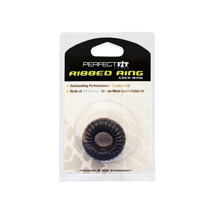 De geribbelde penisring van het merk Perfect Fit is een geweldige elastische penisring, die om de penis van elke man heen past. De ring is heel eenvoudig op te rekken en om je penis en scrotum te plaatsen. De ring is zeer comfortabel om voor langere tijd te dragen. Veilig met alle soorten glijmiddelen. Niet geschikt om met latex (condooms) te gebruiken. Dit stoere design is voor de stoere man die graag wil genieten van een lange en stevige erectie.