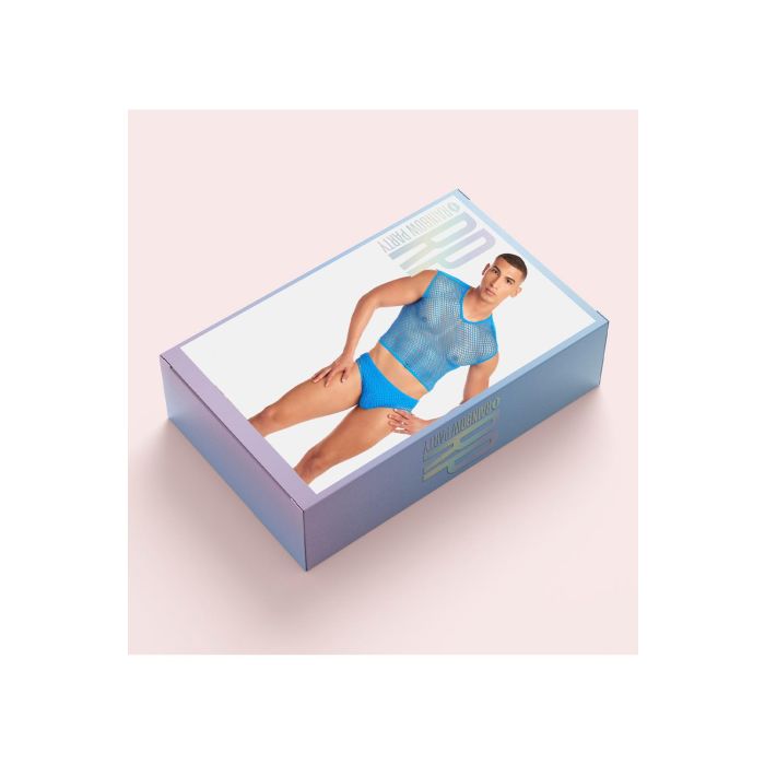 Maak je klaar om de show te stelen met de 3-Delige Set - Blauw van Pink Lipstick, een onmisbaar item voor elke modebewuste man die zijn stijl naar een hoger niveau wil tillen. Deze set bestaat uit een netstof top, een slip en een netstof broekje dat je over de slip kunt dragen. De frisse blauwe kleur geeft een speelse en levendige uitstraling, perfect voor een avondje uit of een festival. De combinatie van deze stukken zorgt ervoor dat je niet alleen trendy bent, maar ook zelfverzekerd en aantrekkelijk.