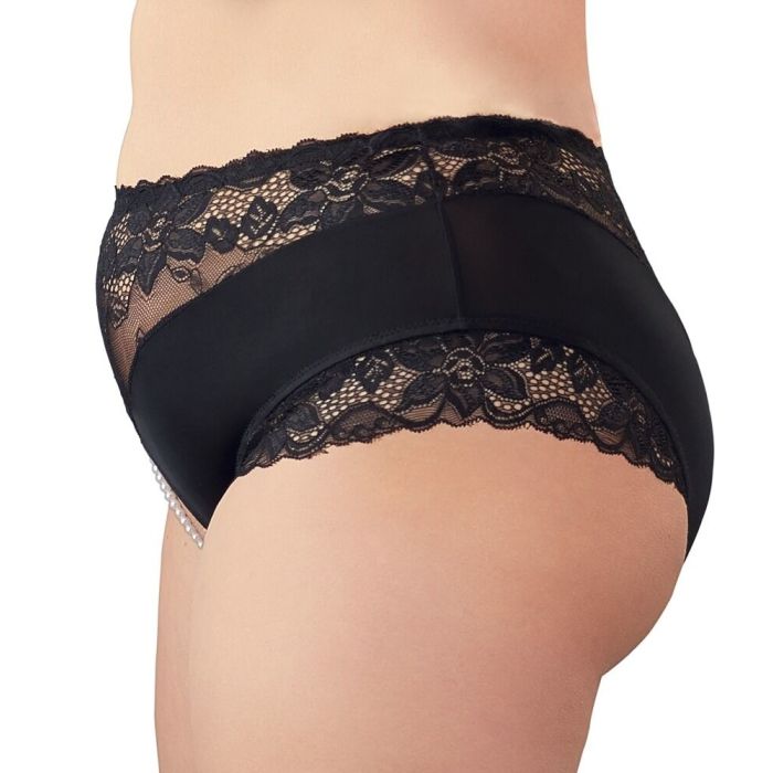 Deze sexy slip heeft een kleine verrassing voor jou in petto. Hij is namelijk voorzien van een stimulerende kralen ketting die over het kruis en dus langs je clitoris heen gaat. Door elke beweging die jij maakt zal de kralen ketting heerlijk over je clitoris heen wrijven, dit geeft een spannend en sexy gevoel en bij een hele gevoelige clitoris is het zelfs mogelijk dat jij er een orgasme van zal krijgen. Hij is afgewerkt met een mooi zacht kantje voor een romantische look. Draag de Plus Size Open Kruis Slip met Parels onder je dagelijkse kleding of in de slaapkamer als voorspel en geniet met je partner of lekker solo.