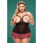 Plus Size Show Me Schoolmeisje Chemise - Zwart/Rood