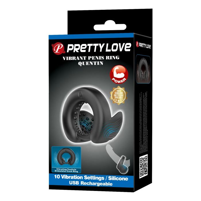Pretty Love Vibrerende Cockring met Dual Motor Quentin - Zwart
