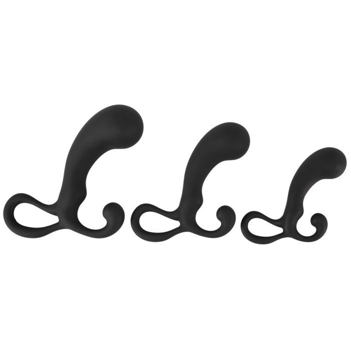 Deze 3-Delige Prostaat plug Set van Rebel bestaat uit drie verschillende maten en gewichten prostaat plugs voor gerichte prostaatstimulatie. De plugs hebben een gebogen ronde kop voor de prostaat, een gebogen perineum stimulator en vingerlus. Door de vingerlus zijn de buttplugs eenvoudig te verwijderen. Begin bij de kleinste en ga steeds iets groter. Maak ze na gebruik goed schoon met een toycleaner.