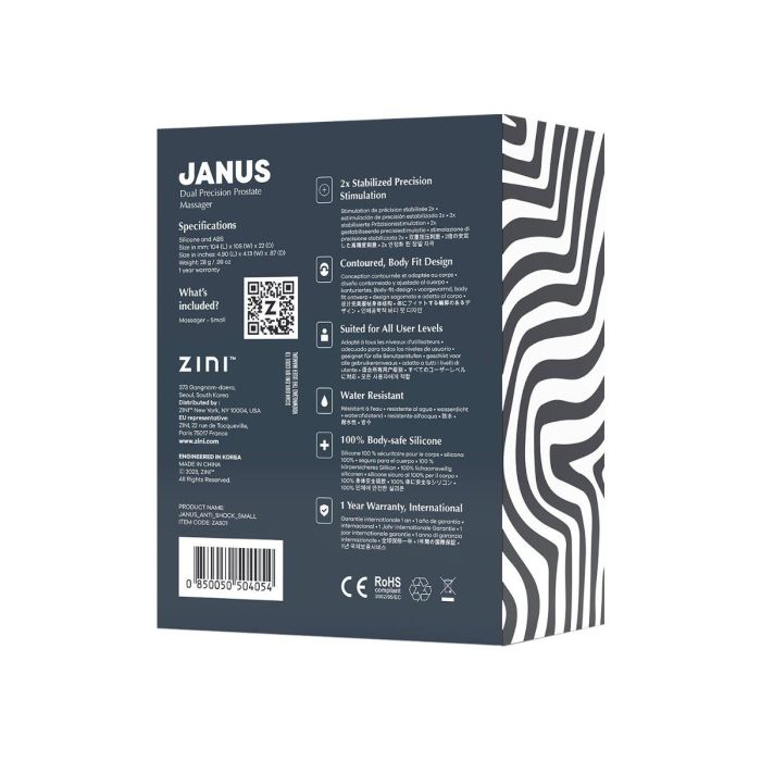 De Prostaat Stimulator Janus Anti Shock van het merk Zini heeft dubbele precisie en is ontworpen om gericht je prostaat te stimuleren. De stimulator is gemaakt van 100% lichaamsveilige siliconen en ABS-materialen. Het materiaal voelt erg fijn, comfortabel en geeft prioriteit aan jouw veiligheid en welzijn.