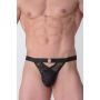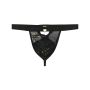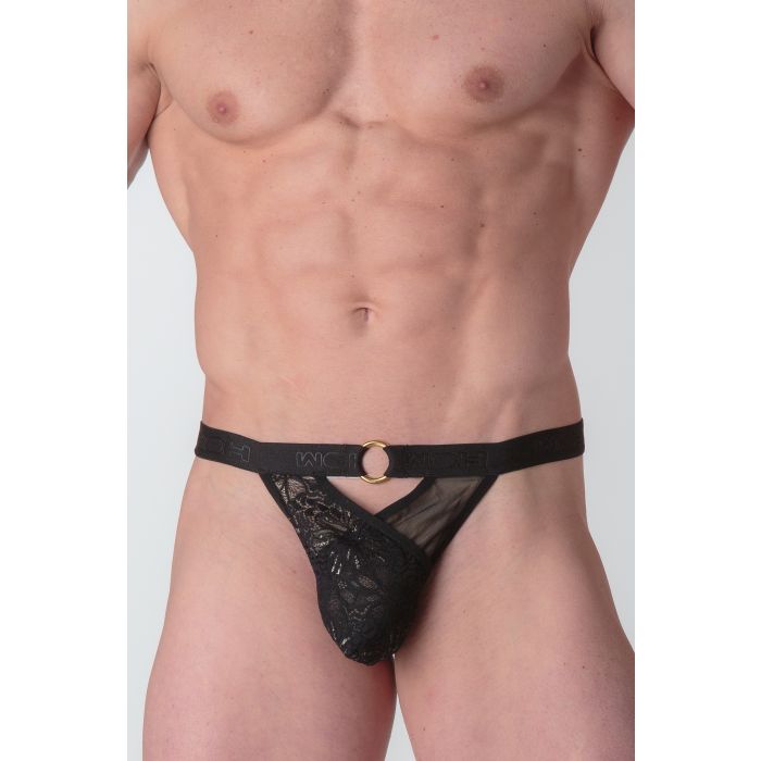 Deze thong is gemaakt van delicate zwarte en gouden kant, gecombineerd met een effen zwarte tule die perfect aansluit op je lichaam. Het ontwerp speelt subtiel met criss-cross materialen, waardoor een speelse schaduwspel ontstaat dat de aandacht trekt en de nieuwsgierigheid prikkelt. Deze thong is niet alleen een kledingstuk, maar een statement dat je zelfvertrouwen en stijl uitstraalt.