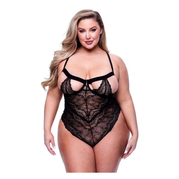 Queen Size Sexy Strappy Kanten Teddy - Zwart