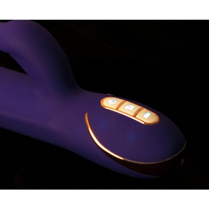 Deze paarse rabbit vibrator Tres Chic van het merk Vibe Couture ziet er op het eerste gezicht uit als een normale rabbit vibrator. Maar deze vibrator is voorzien van iets extra’s. Geniet van een hele nieuwe ervaring en bijzondere stimulaties. De Tres Chic stimuleert namelijk niet alleen je G-spot en clitoris gelijktijdig, maar heeft bewegende balletjes aan de binnenkant van de schacht. Breng het grote gedeelte van de vibrator vaginaal in en geniet van de balletjes in de kop die heerlijk heen en weer bewegen. Jij bepaalt helemaal zelf hoe snel deze balletjes bewegen. Een unieke sensatie die maar weinig andere vibrators te bieden hebben. Vergeet vooral het kleine konijntje niet terwijl je geniet van een intense G-spot massage. Deze clitoris stimulator beschikt namelijk over verschillende vibratiepatronen die jouw clitoris tot in de puntjes verwent. De combinatie van de balletjes in de kop en de vibraties in de clitoris stimulator zal voor een ongekend hoogtepunt zorgen die je niet snel zal vergeten. Beiden functies kunnen apart bedient worden zodat je deze Tres Chic rabbit vibrator geheel naar jou wensen in kunt stellen.