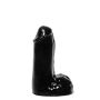Realistisch vormgegeven, zwarte dildo met gladde schacht, kleine eikel en grote balzak. Dit model heeft de lengte en dikte van de gemiddelde penis. Deze fijn gevormde dildo van All Black is gemaakt van vinyl. De meeste heren (en ook dames) prefereren de zachtere vinyl dildo's boven de rubberen dildo's. Dildo’s die gemaakt zijn van vinyl hebben namelijk een aantal voordelen: ze zijn goed bestand tegen glijmiddelen op olie- of vetbasis, daarnaast zijn ze geurloos en gemakkelijk te reinigen met, bij voorkeur, een toycleaner.