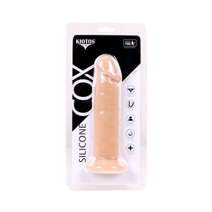 De Realistische Dildo Kiotos Cox 21 CM - Huidskleur is een levensechte dildo die zorgt voor een lange en realistische ervaring bij elk gebruik. De dildo is gemaakt van 100 % hoogwaardig siliconen materiaal en voelt zacht aan op de huid. Het zachte en flexibele materiaal vormt zich makkelijk mee met je lichaam. Door de sterke zuignap bevestig jij jouw dildo op ek gad oppervlak zoals een deur, badkamerwand of aan je bad rand. Door de speciale vorm van de zuignap is de Realistische Dildo Kiotos Cox 21 CM - Huidskleur compatibel met alle standaard maat O-ring strap-on harnassen.