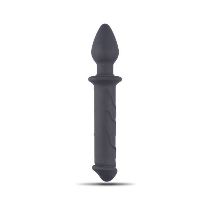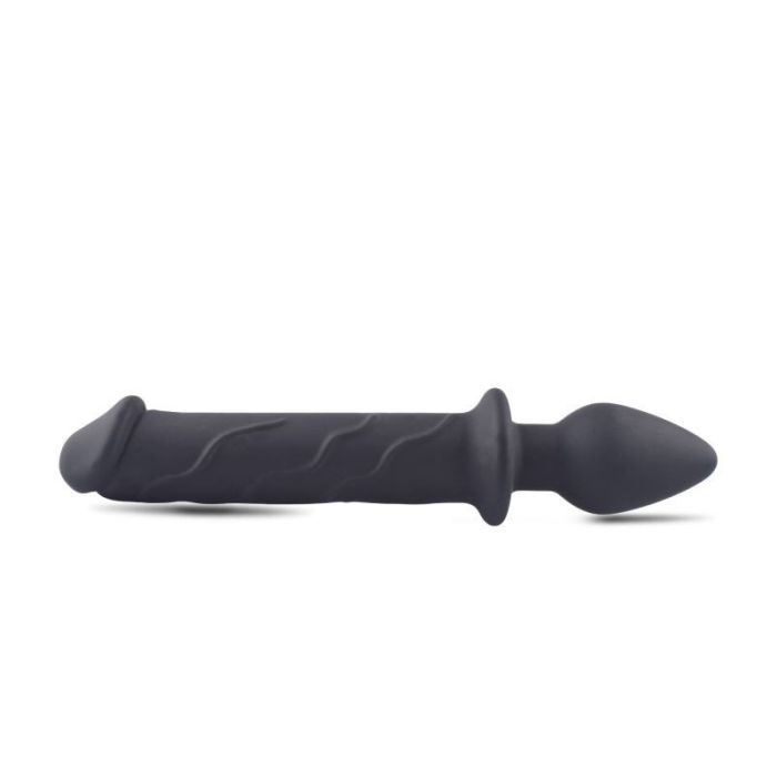 Twee vliegen in een klap met deze zwarte Realistische Dildo met Anaal Plug. De ene kant heeft een realistische penis vorm compleet met een geaderde schacht en een levensechte eikel. De andere kant een anaal plug met taps toelopende vorm. Waar heb jij zin in vandaag? De toy heeft een vlakke basis op het midden en is gemaakt van zacht siliconen materiaal voor een comfortabel gebruik. De toy is waterproof zodat jij de realistische dildo met anaal plug ook in de badkamer kan gebruiken.