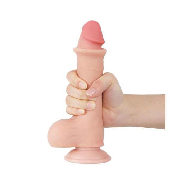 De realistische Dildo sliding skin van Lovetoy is gemaakt met realistisch dubbellaags glijdend huidmateriaal voor een levensecht gevoel. Er wordt een speciale dual density-technologie gebruikt om het gevoel van een echte penis in erectie te simuleren. Geniet van een zachte buitenhuid en een bevredigend stevige binnenkant. De dildo heeft een geaderde schacht, levensechte eikel en realistische ballen. Sliding Skin dildo kan gemakkelijk worden gebogen in elke gewenste vorm. De sterke zuignap kan gemakkelijk worden vast-en losgeschroefd. Maak de dildo na gebruik schoon met een toycleaner.