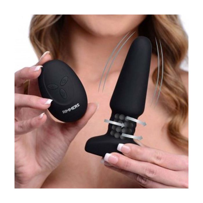 De Rimming buttplug is gemaakt van premium bodysafe siliconen en heeft een lengte van 14 cm en diameter van 4 cm. Dankzij de taps toelopende vorm van de plug kun je hem gemakkelijk inbrengen. Gebruik hierbij wat glijmiddel op waterbasis voor een extra soepel verloop. De vlakke basis zorgt ervoor dat de Rimming buttplug op de juiste plek blijft zitten. Dit heerlijke speeltje heeft maar liefst 8 verschillende vibratiestanden die je eenvoudig bedient met de bijgeleverde afstandsbediening. Maar dat is niet alles. Aan de binnenkant van de buttplug bevinden zich roterende balletjes die voor optimale stimulatie van je anus zorgen. Met de afstandsbediening heb je toegang tot 5 verschillende rotatiestanden. Je kunt dit speeltje natuurlijk heel gemakkelijk handsfree gebruiken, maar het is nog veel leuker om de afstandsbediening aan je partner te geven. Laat je verrassen en geniet samen van al het genot dat dit speeltje zal veroorzaken. Je partner zal super opgewonden raken van de controle die hij of zij heeft over jouw genot.