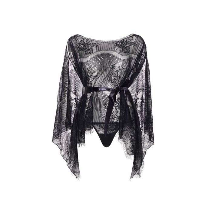 De Romantisch Kanten Set is een 3-delige set gemaakt van netstof en kant met sierlijke bloemen. De top valt soepel rond je lichaam, heeft een off-shoulder model en lange, wijde mouwen. De randen van de top zijn afgewerkt met kleine franjes. Bij de top worden een satijnen ceintuur en een kanten string geleverd, voor een complete sexy lingerie set.