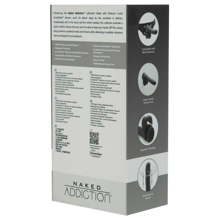 De Flexibele stuwende vibrator 8,6" Rotating & Thrusting Vibrating Dong van Naked Addiction is een veelzijdig speeltje dat trilt, roteert en stuwt voor ultiem genot. Met zijn roterende top en levensechte penislook met fijne adering en uitpuilende eikel, zorgt deze vibrator voor een realistische ervaring. De zuigvoet onder de grijpgrage testikels zorgt ervoor dat de vibrator stevig vastplakt op elk glad oppervlak, waardoor je handsfree plezier kunt beleven. Bovendien is deze vibrator compatibel met strap-ons en urinalen, waardoor je eindeloze mogelijkheden hebt om je fantasieën waar te maken.