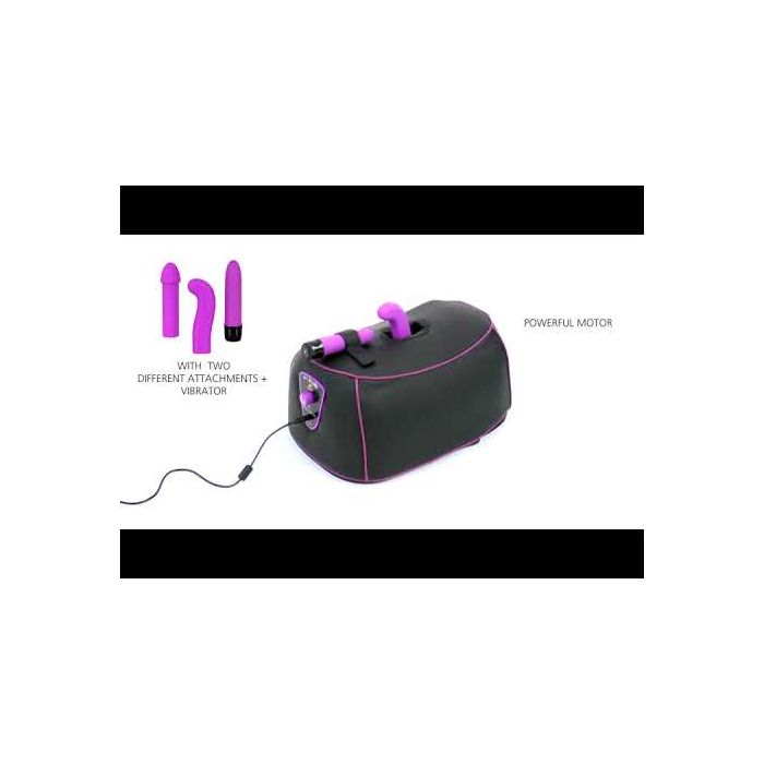 Een heerlijke neukmachine van You2toys die je g-spot of p-spot stimuleert. Hoe werkt hij? Heel eenvoudig, je zet de neukmachine op de grond en je bevestigd 1 van de opzetstukken op de neukmachine. Doe de stekker in het stopcontact en het andere uiteinde in de machine. Je kunt er op gaan zitten met je knieën op de grond en zet hem aan door middel van de knop aan de voorzijde. Je kunt ook nog een vibrator aan de voorkant door de lus steken waardoor je clitoris ook nog gestimuleerd wordt. Tevens zit er een vibrator bij die werkt op 2 AAA batterijen. (Deze zijn niet meegeleverd)