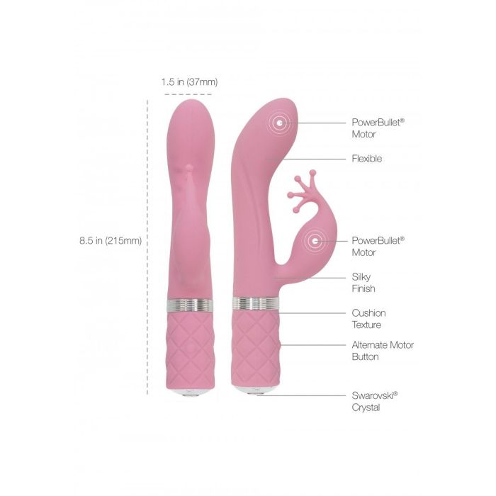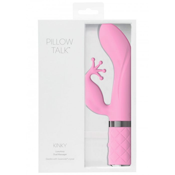 Wauw! Deze Kinky G-spot vibrator met clitoris stimulator van het merk Pillow Talk ziet er niet alleen prachtig uit, maar zal jou ook ongelofelijk veel plezier gaan brengen. De Pillow Talk Kinky vibrator heeft een flexibele clitoris stimulator een kroonachtige uiteinden. Deze kroonachtige uiteinden zullen jouw clitoris en de omgeving ervan intens verwennen, terwijl de elegant gebogen top van de vibrator zich perfect richt op de G-spot. Dubbelop genieten dus met een heerlijk orgasme als gevolg! De Kinky G-spot en clitoris vibrator heeft maar liefst 2 motoren en een super zachte siliconen afwerking. De kussen textuur op het handvat zorgt voor een comfortabele grip, terwijl het oogverblindende Swarovski kristal het sieraad is op de kroon van deze luxe stimulator.