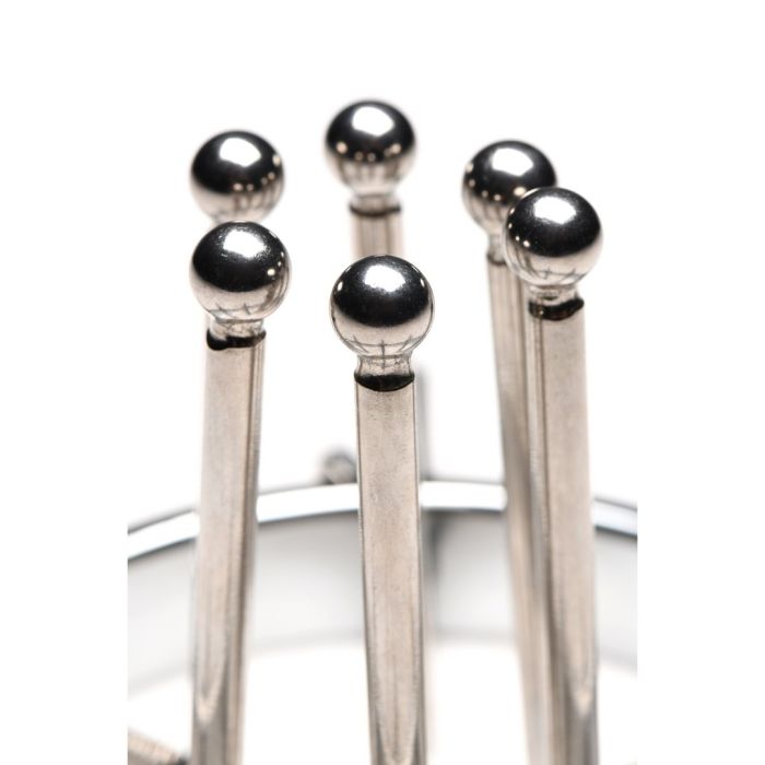 De Anal Explorer bestaat uit een grote ring met een diameter van 10,5 cm en 6 dilatatoren met gladde staafjes met kleine, ronde balletjes aan de uiteinden. Steek het bijna 7,5 cm diep in en spreid hun gat wijd open! De ring is breed genoeg zodat je er ook je vuist doorheen kunt steken!