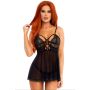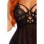 Voeg een vleugje romantiek toe in de slaapkamer en draag daarvoor de Sarah Kanten Babydoll. Jouw avond zal gegarandeerd omtoveren tot een hete avond samen met je lover. De babydoll heeft sierlijke kanten details en een nauwsluitende pasvorm waardoor je een sexy uitstraling zult hebben. De babydoll is gemaakt van 90% polyester en 10% lycra en de materialen voelen zacht aan op de huid.