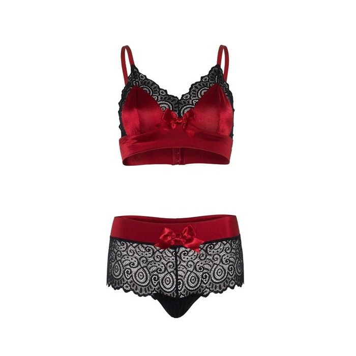 De Satijnen BH en Short van Leg Avenue vormen een super schattig en sexy lingerie setje. Het setje bestaat uit een beugelvrije bh en een bijpassende boyshort. De bh is gemaakt van zacht en soepel satijn in een verleidelijk rode kleur en is afgewerkt met een grote, satijnen strik en sierlijk zwart kant langs de randen. De bh heeft verstelbare schouderbandjes voor een perfecte pasvorm. De boyshort heeft een brede tailleband gemaakt van rood satijn en is verder gemaakt van doorschijnend kant en is voorzien van een katoenen kruisje.