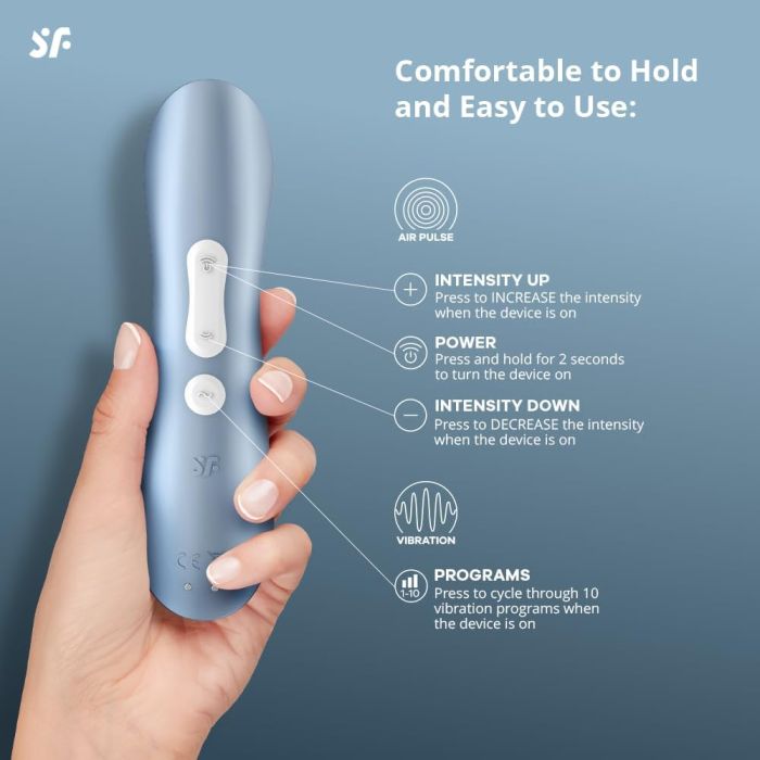 Satisfyer Pro 2 kennen we allemaal als het populairste model van Satisfyer. De Satisfyer Pro 2 Vibration lijkt op de Pro 2 alleen met dan met vibratie als extra toevoeging. Het uiterlijk is slechts op enkele punten wat aangepast maar over het geheel genomen nog steeds de klassieke Satisfyer Pro 2. Het apparaat beschikt over maar liefst 11 drukgolf programma's en 10 vibratieprogramma's die tot stand worden gebracht door twee afzonderlijk te bedienen motoren. De Satisfyer Pro 2 vibration is waterproof waardoor je lekker kunt genieten van jouw nieuwe speeltje in de badkamer! De Satisfyer Pro 2 beschikt evenals het vorige model over een ingebouwde accu die gemakkelijk op te laden is via de meegeleverde magnetische USB-kabel die zichzelf vastklikt aan de twee oplaadpuntjes aan de onderzijde van het apparaat.