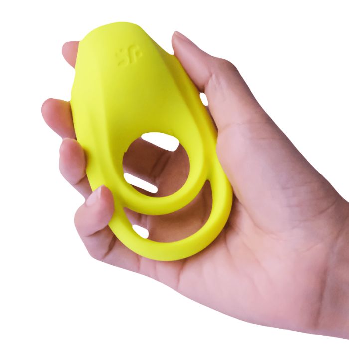 Laat je fantasie de vrije loop met de Satisfyer - Spectacular Duo - Neongeel. Deze cockring zal jou dubbele sensaties geven dankzij de stimulerende combinatie van de ring rond de schacht van je penis en rond je balzak. Deze cockring zorgt ervoor dat jouw erectie versterkt en langer aanhoudt zodat jij samen met je partner langer kunt genieten van een heftig avondje seks.