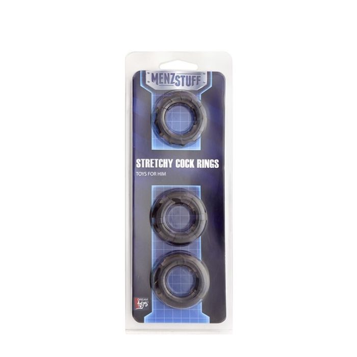 Met deze set van 3 rekbare cockringen in de kleur smoke heb jij de perfecte ringen om jou en je partner een onvergetelijk lange nacht te laten geniten. De ringen knellen af en zorgen dat het bloed niet terug kan zodat jij een kneiterharde erectie zal ervaren. Daarnaast duurt jouw erectie ook nog eens langer en wordt je orgasme uitgesteld zodat jullie het super lang kunnen volhouden. Een nacht vol spanning en sensatie staat op jullie te wachten. Elke ring heeft een andere vorm en zal aan de schacht van je penis anders aanvoelen. doordat de ringen zo rekbaar zijn past hij om elke man en is de eenvoudig om te doen.