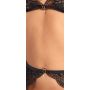 Deze exclusieve set van een zachte beha, jarretelgordel en string is gemaakt van fijn zwart kant met goudkleurige details, waardoor het een verfijnde en elegante uitstraling heeft. Het kant voelt heerlijk zacht aan op de huid en is elastisch, waardoor het zorgt voor het hoogste draagcomfort. Zowel de beha als de jarretelgordel zijn voorzien van een strik en glittersteendecoratie aan de voorkant, en hebben een haaksluiting aan de achterkant voor een perfecte pasvorm. De bandjes en brede jarretels zijn verstelbaar, zodat je de set kunt aanpassen aan jouw lichaam. De bijpassende kanten string heeft twee smalle stretchbandjes die bij het kruis samenkomen, wat zorgt voor een verleidelijk detail.
