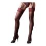 In deze kousen uit de Cottelli Collection mogen vrouwen benen zeker gezien worden! Deze dunne zwarte kousen zijn afgewerkt met een siervolle donkerrood bewerkte kanten band. De sierbanden zorgen er niet alleen voor dat deze panty's schitterend zijn om te zien, maar ze houden ook de kousen goed op hun plek. Je kunt deze kousen dus met en zonder jarretel dragen en jarretels zijn door de rand makkelijker te bevestigen. In deze kousen zul je er zeker super verleidelijk uitzien. Deze bijzonder mooie kousen mogen zeker niet ontbreken aan jouw garderobe.