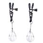Sierlijke zwarte tepelklemmen uit de Black Kitty collectie met doorzichtige hangers in de vorm van een druppel. De klemmen zijn verstelbaar en hebben een lengte van ca. 6 cm (totale lengte 11,5 cm). De veerdruk van de klemmen is te verminderen door aan de schroef te draaien.